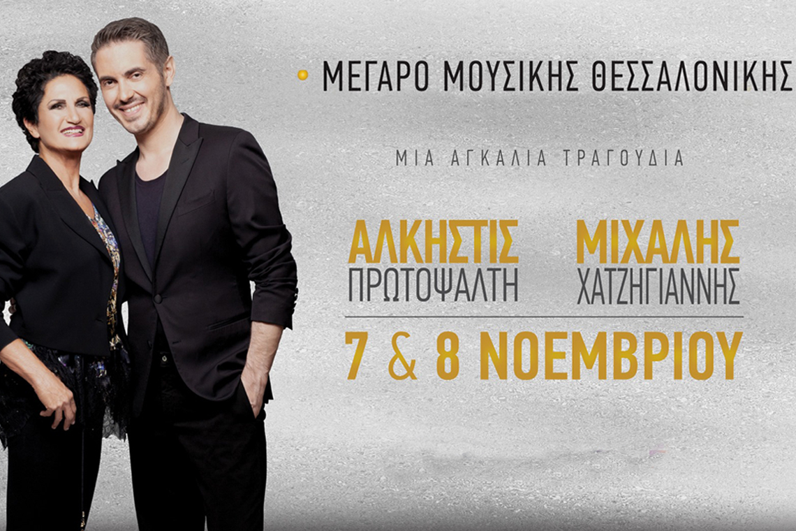 Μετά την μεγάλη επιτυχία της καλοκαιρινής τους περιοδείας, η Άλκηστις Πρωτοψάλτη και o Μιχάλης Χατζηγιάννης ανεβαίνουν στη σκηνή του Μεγάρου Μουσικής Θεσσαλονίκης χαρίζοντάς μας «Μια αγκαλιά τραγούδια»!